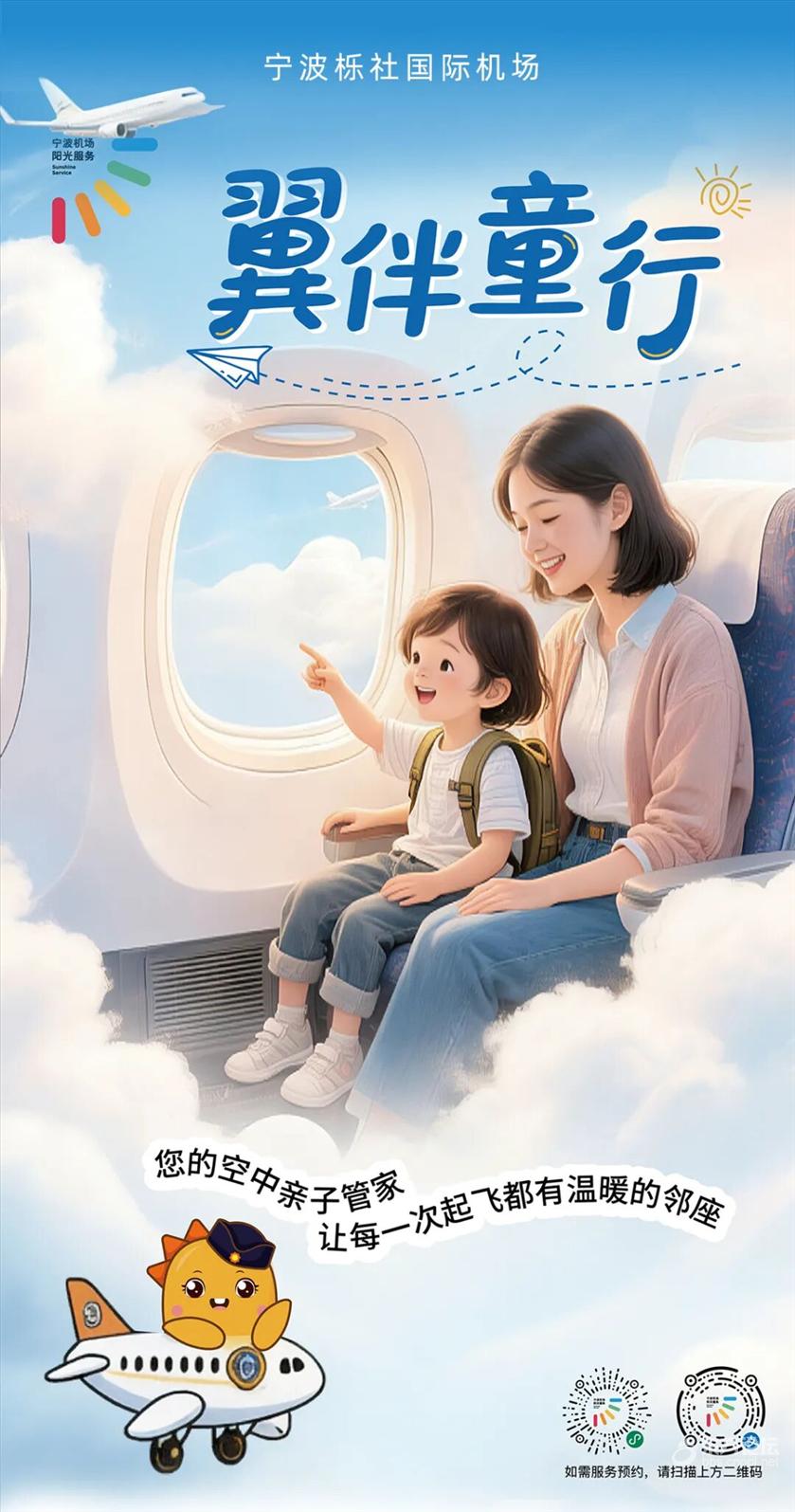 别担心,宁波机场阳光服务全新推出 “翼伴童行”儿童家庭座位预约服务 让你们相伴同座 云端时光安心又温馨 ![]() 该怎么预约呢? ![]() 很简单!跟我一起“1.2.3”: ①打开“浙里飞”平台 ②找到“亲情同座”预约入口 ③填写航班信息、家长与儿童证件号、联系方式等必要信息,提交预约 ![]() ![]() 哪些旅客可以预约呢? ![]() 适用人群: 至少含1名2-16周岁儿童的家庭旅客 预约截止时间: 所乘航班日期前一日22:00前 预约人数: 单个预约最多支持3名成人+3名儿童