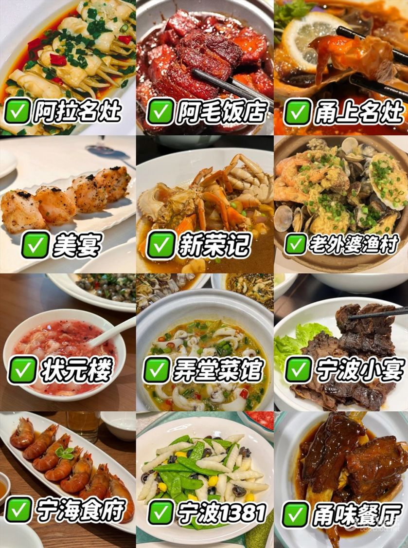 过几天估计有不少外地游客来宁波旅游,想尝尝地道的宁波菜。 作为一个在宁波生活了20多年的本地人,平时也喜欢到处找找吃的。刚好手头整理了一些自己吃过或者身边朋友反馈不错的馆子,供大家春节期间聚餐做个参考。 1、阿拉名灶 2、阿毛饭店 3、甬上名灶 4、美宴 5、新荣记 6、老外婆渔村 7、状元楼 8、老宁波弄堂菜馆 9、宁波小宴 10、 宁海食府 11、 宁波1381 12、 甬味餐厅