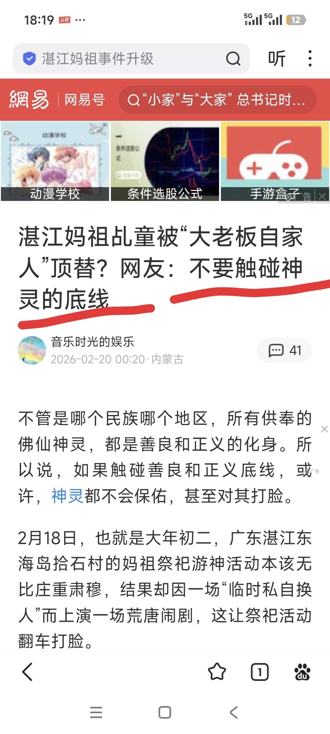 广东湛江的抬神活动,你归到民俗活动倒可以,从报道来看,动不动什么神明?当地政府的工作人员难道没学习过马列?没接受过毛主席思想?还有这抖音啥的,面对什么汹汹神明崇拜的论调就不知道归正?乩童不就是巫婆神汉一类么?要这么说西门豹给河伯娶亲沉神婆也是对神明不敬了?当年毛主席的文革时,有游神?如果说当民俗表演倒也无所谓,动不动神明?难道现在封建迷信又抬头了?合该对这类给封建迷信,神明崇拜助推的抖音等进行处罚。