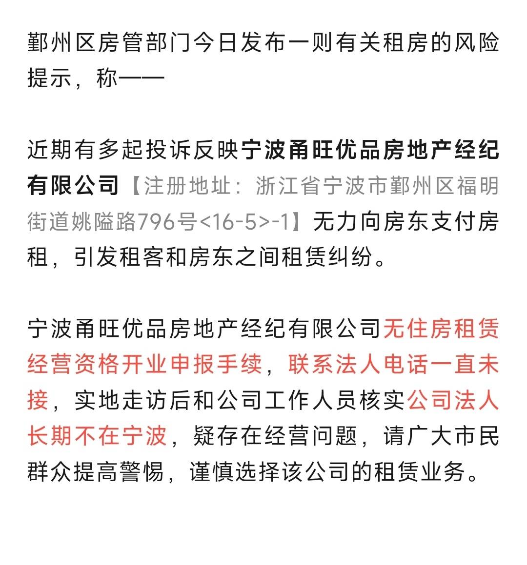 经济正在平稳降落。 今年GDP目标定在4.5%-5%,比过去几年的5%左右再下一个台阶。官方说法是高质量发展、留足空间。普通人的感受更直接:钱难赚,房租砍到骨头,房子租不出去,中介批量暴雷。 这不是个案,是收缩的信号。 先看人口。百度迁徙指数很诚实:2026年春节前后,宁波迁出规模创7年新高,腊月廿二单日迁出指数8.61,连续三年走高。回来的人少了,留下来的更穷了。 我自己的房子,挂了快半个月,看房的寥寥无几。 市场已经分层: - 1000元左右的房源,刚毕业的本地周边大学生抢着租; - 超过1200元,基本无人问津; - 外地来的学生、务工人员,肉眼可见变少。 宁波的租房市场,正在从“抢房”变成“抢客”。房东从挑租客,变成求着租客签合同。 更扎心的是二房东和中介,开始批量跑路。 3月6日,鄞州区房管部门直接发了风险提示: 宁波甬旺优品房地产经纪有限公司,注册在福明街道姚隘路796号-1,无住房租赁经营资格申报,法人电话不接、长期不在宁波,已经无力支付房东租金,房东租客互相扯皮,投诉一堆。 无资质、收租客钱、欠房东钱、人失联。 这是标准的高收低出、资金链断裂。 不止这一家。海曙、鄞州接连预警,多家房产经纪公司被曝拖欠租金、人去楼空。 租赁市场是城市经济的晴雨表。 - 人口流入放缓→需求萎缩→租金下行→二房东赚不到差价→暴雷→房东租客双输。 - 年轻人收入上不去,只能压缩居住成本,1000块是生死线,多200都掏不出来。 GDP平稳降落,不是空话。 它落在每一套租不出去的房子里,落在每一个砍价的租客身上,落在每一个失联的中介法人电话里。 经济还在收缩。 宁波的租房市场,已经把答案写在了墙上。 ![]() ![]() |