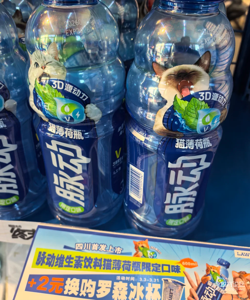 猫薄荷口味?在四川旅游早上买早餐突然发现脉动上新口味了,果断拿下尝试,之前的青草口味朋友都说怪,但是我觉得还不错。