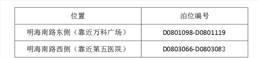 因道路施工,明海南路以下收费泊位自2026年3月8日0时起暂停收费,恢复收费日期为2026年3月12日8时(如因天气原因造成工期延后,则恢复收费日期相应延后)。