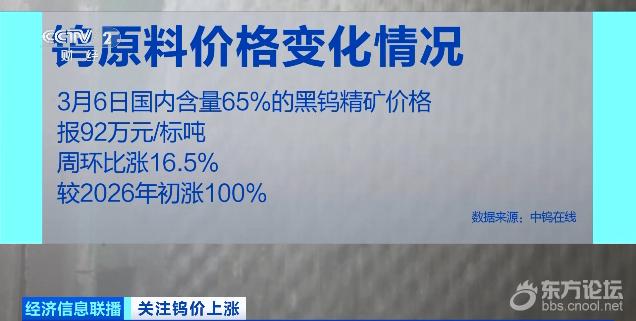 金属钨,是一种具有独特物理和化学性质的稀有金属,熔点高、硬度高、耐腐蚀,在工业领域有着广泛应用。从去年以来,钨料价格持续上涨,对产业链上、中、下游企业都产生不同程度的影响。 在江苏常州新北区的一家硬质合金刀具生产企业,钻头、铣刀、定制刀具等正有序下线。一周内,将有近2000只航空航天专用刀具发往沈阳一家飞机制造企业。据了解,一件标准硬质合金刀具,钨原料的需求占比超过85%。而近一年来,钨粉供不应求,目前价格已突破每公斤2100元,是去年同期的6倍多。为应对不断攀升的成本压力,企业采用分阶段购买原材料的方式以分摊成本。 ![]() 而在江苏昆山另一家硬质合金产品生产企业,一个个精细的微型刀具正从自动化生产线上产出,这些刀具最小厚度仅1毫米,主要用于3C电子、精密模具等领域的超精加工,钨也是其中不可或缺的原料,企业同样因钨价上涨承压。企业负责人表示,除了优化采购策略,他们还力图通过提升刀具精度和使用寿命,来对冲成本压力。而这在当前同类企业中也是普遍现象。 ![]() 钨价持续上涨,对产业链上中游的开采和加工企业又有哪些影响呢? ![]() 记者实地走访了河南洛阳的一家矿山企业。负责人介绍,钨矿一般分为黑钨矿和白钨矿,黑钨矿品位更高、冶炼成本更低,属于优质资源,但经过长期开采资源量已大幅减少,如今多实行保护性开采。白钨矿品位较低,开采、冶炼成本高。这家企业的钨精矿年产量在8400吨左右,主要是白钨矿。这轮钨价上涨,让白钨矿也能获得较大利润空间。 ![]() 而记者走访的中游加工企业则表示,钨产业链最核心的中间原料是仲钨酸铵,价格已达每吨136万元,较年初涨103%,成本压力骤增,目前,他们采用提高废料、尾矿回收再利用等方法进行成本对冲。 ![]() 洛阳钼业钨业公司经理 刘元旗:日产能在20吨APT(仲钨酸铵)左右,主要用在硬质合金刀具领域。在价格较高的情况下,优先考虑回收率,也就是说,从矿石各类渣里回收的金属越多,收益增长速度比产能扩大可能会更高一些。 金融需求与实际需求共振 推动钨价走高 本轮钨料价格上涨的原因是什么?这种趋势是不是还会延续? 钨是一种战略性稀有金属,它的硬度和熔点是所有非合金金属中最高的,因此被称为“工业牙齿”,全球每年钨的消费量约为12.5万吨,其中,硬质合金占比58%,年用量约7.25万吨,硬质合金是切削刀具、矿山钻头、精密模具的核心材料,支撑着装备制造、汽车、工程机械等基础工业。 ![]() 国信期货首席分析师 顾冯达:智能化的加强,相关精细化加工呈现爆发式增长。另外一方面,整个市场在探索和探讨这种战略资源超硬合金的储备,加强其金融端的需求增长。所以,实际需求和金融需求共振叠加,是本轮需求爆发式增长的核心动力之一。 ![]() 作为制造硬质合金的上游原料,钨精矿、仲钨酸铵等价格的变化直接影响着下游产品价格。数据显示,截至3月6日,国内含量65%的黑钨精矿价格报92万元/标吨,周环比涨16.5%,较年初涨100%;仲钨酸铵(APT)价格报136万元/吨,周环比涨16.2%,较年初涨103%。 国信期货首席分析师 顾冯达:从目前的市场情况来看,短期战略资源价格积累了过高涨幅之后,有可能像黄金、白银和前期涨幅较强的有色金属一样,出现高位回吐的情况。 ![]() 作为战略性矿产,钨的开采总量受年度开采指标刚性约束。2025年4月,自然资源部下达第一批钨矿开采总量指标5.8万吨,较2024年和2023年第一批分别减少4000吨和5000吨,钨矿开采活动监管加强。此外,我国钨原矿品位从2004年的0.42%下降至2020年的0.28%,品位下降进一步限制了产能释放。多家机构表示,在供给无增量、需求有增量的“硬缺口”背景下,钨价整体强势格局仍将延续。 |