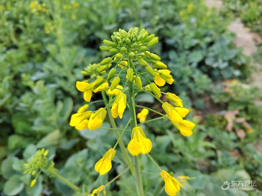 前几天去乡间晨练的时候,见到的还是零零星星的几朵早开的油菜花,不但有黄色的,而且还有洁白无瑕的。 上星期六,又一次来到了那片田野,见到的已经是一望无际的黄金的海洋。 这里是宁波市鄞州区的一块农业丰产示范方,占地100多亩。 在我们老年人的心目中,今天的油菜开花似乎比往年早了很多,以前的岁月,这时候正是晾“菜烘干”的大忙时节,距油菜开花最起码还得十天左右。 我们那时候种的本地油菜,全部都是“移栽”的:一行行、一株株;而眼前的油菜似乎是“直播”(散播)的,大大小小、杂乱无章。生长得很不整齐。 现在这油菜好像不全是要他结籽、榨油,而更是为了让人们欣赏这一片花海。毕竟人们的生活水平提高了,在追求物质享用的同时,更注重精神享受啦。