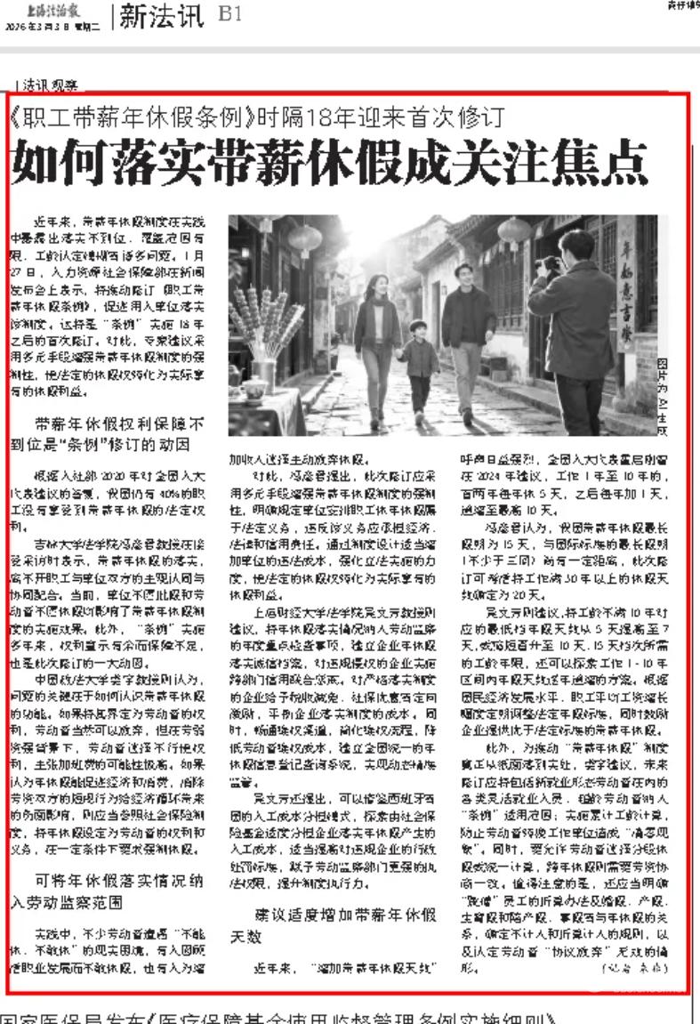 《职工带薪年休假条例》将修订 今年年初,人社部在例行新闻发布会上表示将推动修订《职工带薪年休假条例》,促进用人单位落实该制度。 ![]() 在我国,职工带薪年休假的权利可以追溯到1994年颁布的劳动法。2008年1月1日,《职工带薪年休假条例》正式施行。同年发布的《企业职工带薪年休假实施办法》进一步细化规则,至此形成相对完整的制度框架。 《职工带薪年休假条例》规定:职工累计工作1到10年,年休假5天;10到20年,休10天;20年以上,休15天。因工作需要不能安排休假的,单位应予以日工资收入300%的补偿。 时隔18年,这项事关4.02亿职工休息休假权的制度有望“上新”。 专家表示,查漏补缺、优化供给、增强刚性或是此次条例修订的核心议题,让“想休不敢休”真正变成“应休尽休”。不只是权利回归,更是制度升级的关键。 ![]() ![]() ![]() ![]() ![]() 也有网友担心落实情况,认为应该加大监管力度。 ![]() ![]() ![]() 来源:浙江新闻、潮新闻、中国青年报、新京报、中国新闻网等 |