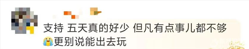 3月11日 “工作不满10年休5天年假规则该调整” 登上热搜 ![]() 全国人大代表汪玉成建议: 升级年休假、落实双休制 “工龄10年以下的青年劳动力,正成为社会发展的中坚力量。承受着较大的物质和精神的压力。5天的法定年休假,难以保障其充分的休息时间。对劳动者,特别是青年的劳动者,要保障有假休、敢消费,来满足他们对美好生活的需要。”全国人大代表,浙江安吉余村党支部书记、村委会主任汪玉成接受媒体采访时表示。 根据2008年颁布的《职工带薪年休假条例》,职工累计工作已满1年不满10年的,年休假仅5天。 ![]() 他还表示,年休假制度对占旅游市场主体地位的青年群体也形成了消费抑制。 针对上述问题,汪玉成建议——