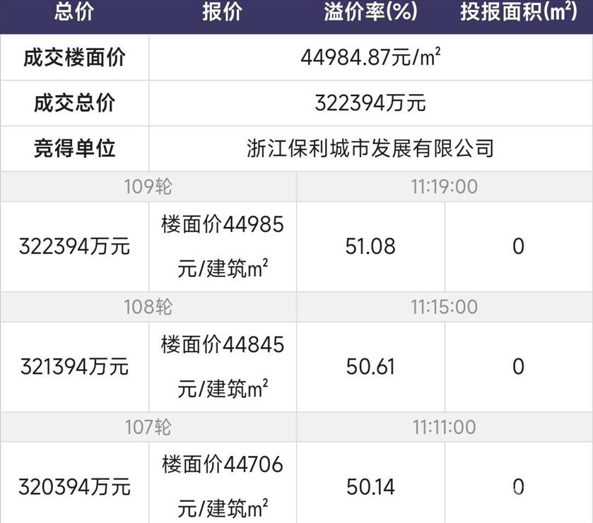 3月10日,杭州1宗宅地出让,经过23轮竞价,最终由保利发展以总价15.86亿元竞得,成交楼面价38084元/㎡,溢价率16.11%。这是继3月6日溢价超50%拿地后,保利发展再次在杭州高溢价拿地。