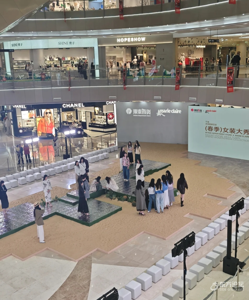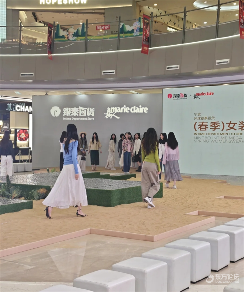 最近去环宇城,在环宇城一楼看到了一场时装秀,商场直接搬来5吨黄沙铺成了秀场,模特展示最新的春装,现场还牵来了马作为噱头,吸引了很多人围观,现在宁波的商场可真卷啊。
