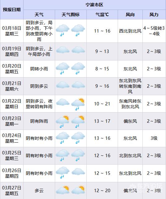 今天,受冷暖气流交汇影响,有一次小雨过程,气温在11℃—16℃上下。 19—20日(周四、周五)依然是阴阴雨雨的天气,气温在冷空气的影响下有所下降,最低7℃-9℃左右,最高12℃-15℃上下,体感有些湿冷,“春捂”工作不能放松。 这个双休日算是本周天气相对给力的两天了,目前看周六到周日白天雨水暂歇,以阴到多云为主,周日夜里局部地区又有小雨登场。 到了下周初,阴雨天气将再度回归。 ![]() 春天天气变化快,雨水增多,请及时关注最新的天气预报,合理安排生活和出行。虽然雨水可能会影响大家的出行,但春雨贵如油,滋润着万物,大伙儿不妨放慢脚步,感受一番雨中的春意。 新闻多一点 初春时节,气温起伏多变,人体毛孔会随着气温升高逐渐张开,此时如果过早减衣,可能导致身体着凉,诱发感冒、关节疼痛等问题。 过去几天,全国大部以升温为主,不过3月,冷空气活动依然频繁。受冷空气影响,明后两天,西北、华北、东北、黄淮、江淮等不少地方忽冷忽暖,建议大家根据天气变化及时调整着装,适当“春捂”。