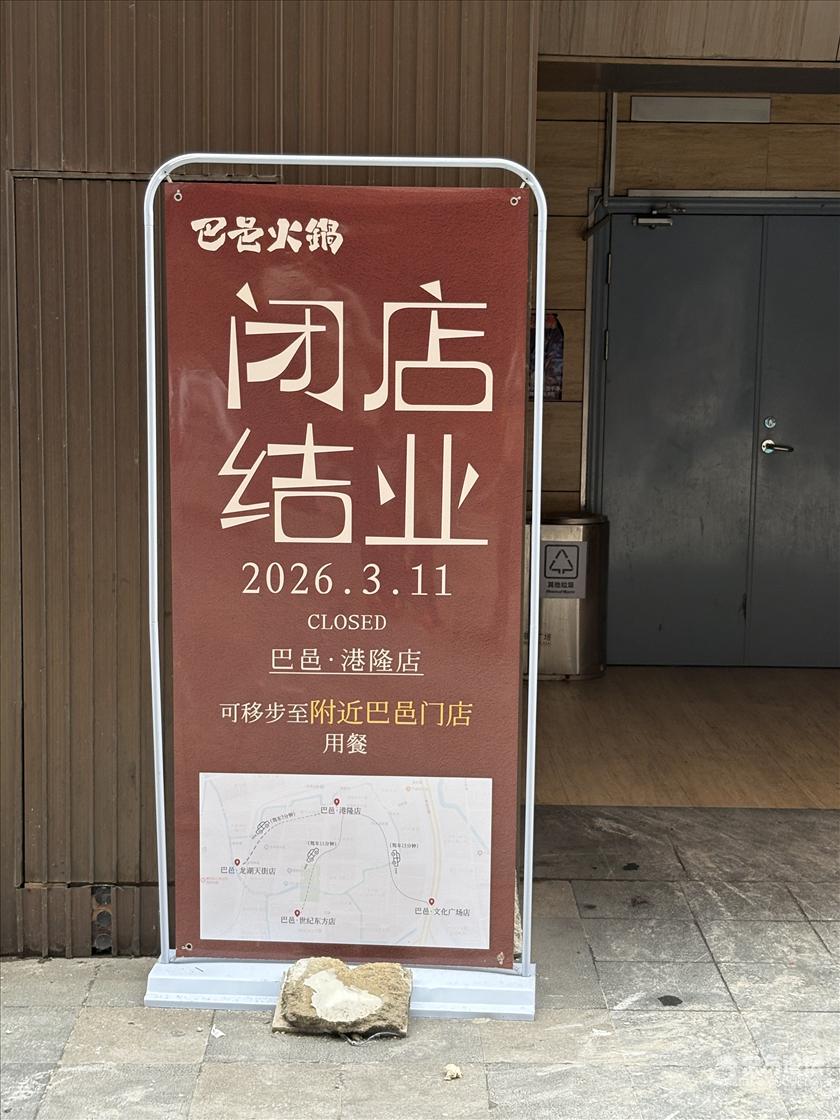 这两天去港隆广场,发现港隆广场这家巴邑火锅竟然3月11号也关门了,巴邑火锅在宁波还是比较火的,记得前段时间刚刚还去吃过,火锅店生意也这么难做吗?