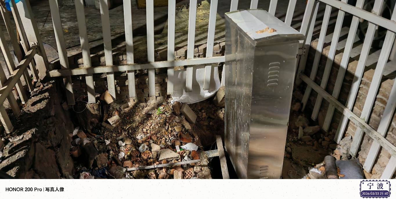 宁海县兴宁路边一道上的大坑有个不锈钢箱子,成垃圾桶啦  [复制]