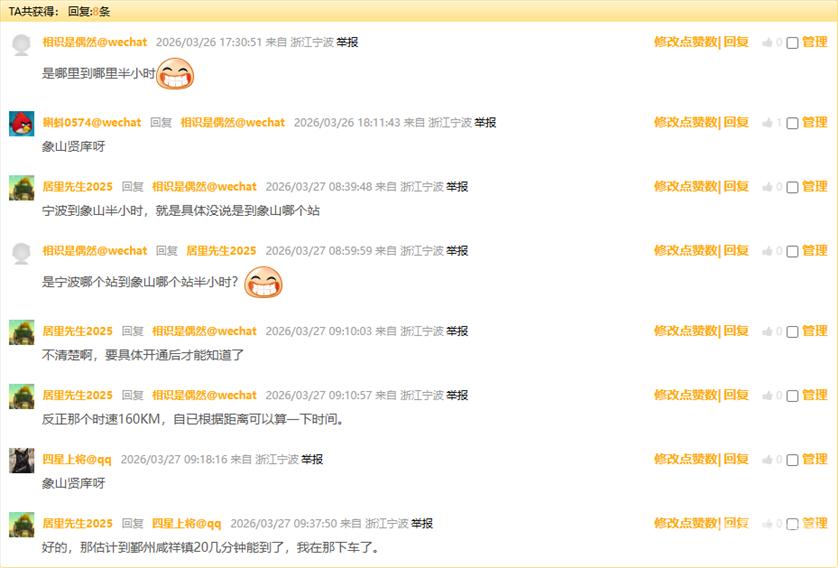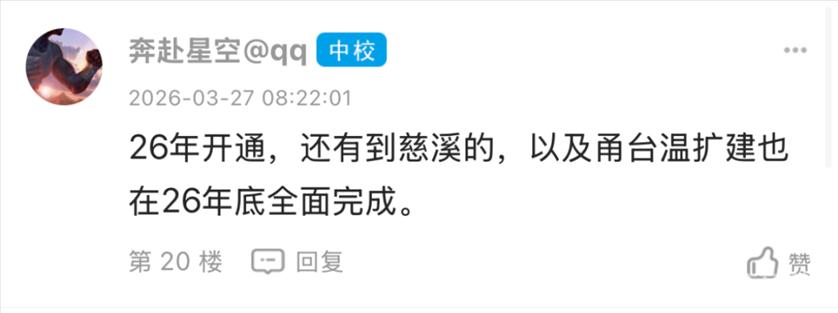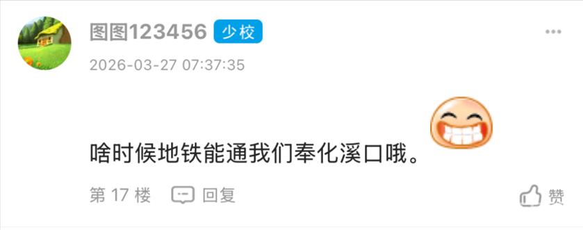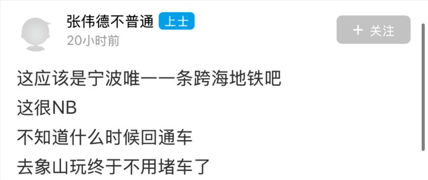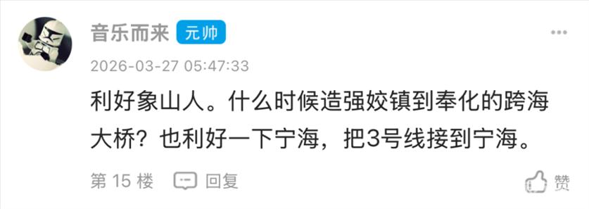 东论网友@张伟德不普通发了个帖子,一下子炸开了锅。 ![]() ![]() 说实话,这条帖子戳中了太多宁波人的痛点。每逢节假日,从宁波去象山,跨海大桥堵成"停车场"的场景,谁没经历过? 但帖子发出来后,评论区却意外地"歪楼"了——大家最关心的不是什么时候通车,而是到底要多久才能到象山? 网友吵翻了:半小时到底到哪? 网友@居里先生2025率先发问: ![]() 这个问题一出,评论区瞬间变成了"数学讨论组"。 ![]() 目前公开信息显示,宁象线设计时速为160公里/小时,相比于普通地铁80公里/小时的速度,确实快了不少。从宁波主城区的小洋江站出发,到象山贤庠站、大目湾站等地的具体运行时间,确实要等线路正式开通后才能精准测算。但不管怎么说,相比现在开车一个多小时甚至更长的堵车时间,轨道交通的准时和高效,已经让很多人充满期待。 站名引发小插曲,网友傻傻分不清 在讨论中,还出现了一个有趣的小插曲。 网友“tr1123”留言问: ![]() 这个问题让不少宁波人忍俊不禁。贤庠在象山,咸祥在鄞州,虽然读音有些相似,但完全是两个地方。这也从侧面反映出,随着轨交线路不断延伸,一些相对陌生的地名开始进入大家的视野,偶尔也会让人产生“地名错觉”。 通车时间定了?网友说法不一 关于通车时间,评论区也是众说纷纭。 ![]() @江鱼@qq说得更有鼻子有眼: ![]() @奔赴星空@qq 则来了个"大礼包": ![]() 如果真是2026年底开通,那现在已经在试车阶段,倒也算对得上。 沿线居民已经开始"点菜"了 地铁还没开通,沿线居民已经开始"点菜"了。 @音乐而来表示 ![]() @图图123456跟着喊: ![]() @mjy9910则关心: ![]() @女侠有礼了已经开始规划周末行程: ![]() 不过@好人一个老方@qq给泼了盆冷水: ![]() 看来,地铁通了只是第一步,"最后一公里"的问题还得自己解决。 也看得出来,宁波人对于轨道交通的期待,远不止一条宁象线。从慈溪到宁海,从奉化到溪口,大家心里都有一张属于自己的“轨交蓝图”。 现实情况:正在稳步推进中 根据公开信息,宁波至象山市域(郊)铁路工程确实在稳步推进中。线路起自地铁4号线、7号线换乘站小洋江站,经鄞州区云龙镇、横溪镇、塘溪镇、咸祥镇,跨越象山港后,经象山县贤庠镇、大徐镇、丹东街道、丹西街道,终于大目湾站。 线路全长约61.45公里,其中象山港跨海段就有不少看点。全线共设10座车站,平均站间距约6.8公里。 一旦建成通车,象山将正式纳入宁波中心城区“半小时交通圈”,象山港两岸的通勤效率将得到质的飞跃。对于宁波人来说,周末去象山吃海鲜、吹海风,再也不用担心被堵在桥上;对于象山而言,也意味着真正融入宁波都市圈,迎来新的发展机遇。 这条地铁到底牛在哪? 能让网友如此期待,这条地铁确实有它的"硬核"之处: 1. 宁波首条跨海地铁 从宁波到象山,需要跨越海域,这也是宁波地铁建设史上首次"下海"。 2. 时速160公里 这个速度在地铁里算是"高铁级别"了,比普通地铁快不少。 3. 终结"堵堵堵" 对于想去象山吃海鲜、去松兰山看海、去影视城打卡的宁波人来说,再也不用担心堵在跨海大桥上了。 一条地铁,牵动的不仅是两地的交通,更是无数宁波人的生活方式。 有人期待去象山吃一碗地道的海鲜面,有人盼着周末去横溪爬山,还有人已经开始盘算着把地铁沿线都玩个遍。 当然,关于"半小时到底到哪"的争论,估计要等到正式开通那天才能尘埃落定。 你期待这条跨海地铁吗?开通后第一站想去哪? 对于此事,你怎么看? 欢迎留言讨论 |