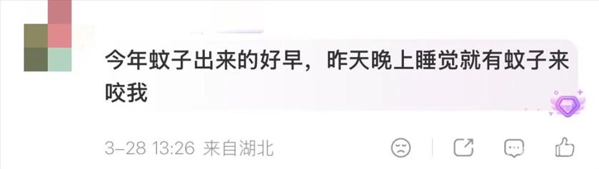 近日 登上热搜 引发网友热议 ![]() 全国多地的网友表示 才三月 就被蚊子叮到睡不着 ![]() ![]() ![]() ![]() ![]() 有许多网友感觉: 今年蚊子不仅来得早、数量多 还“格外狡猾” 普通花露水、蚊香效果大减 ![]() ![]() 今年蚊虫为何提前出现? 近日,国家疾病预防控制局举行新闻发布会。其中提到,当前,蚊媒传染病在全球范围内广泛流行,随着我国出入境人员数量的明显上升,境外疫情输入我国的风险将增加。加之气候变暖、降水增加等变化,导致伊蚊在我国的孳生地不断扩大,流行季持续时间不断延长。 专家研判认为,2026年登革热、基孔肯雅热等重点蚊媒传染病境外疫情输入,引发本地扩散的风险较往年上升,部分地区存在发生聚集性疫情的风险。 华中农业大学动物科学技术学院粟绍文教授表示,今年春节以来天气就比较暖和,气温比常年同期偏高,再加上近段时间空气湿度大、降雨频繁,为蚊虫繁殖创造了有利条件,导致蚊虫提前出现。 疾控部门提醒: 预防蚊子咬,春天就得开始 3月27日,中国疾控中心发文提醒:预防蚊子咬,春天就得开始了。 到底是哪些蚊子在咬人?中国疾控中心介绍了以下“吸血蚊”: 1.淡色库蚊或致倦库蚊(常见的“家蚊”) 苏醒条件:气温持续稳定在15°C以上。 藏身地:地下车库、楼道、管道井、居民家中的温暖角落。 行为:从半休眠状态“开机重启”,急需吸血来启动繁殖。因此,早春甚至在冬季供暖的室内被叮的“第一口”,几乎都来自它们。它们是惊蛰后最早需要防范的“偷袭高手”。 2.白纹伊蚊(俗称“花蚊子”) 苏醒机制:它们的卵以滞育状态越冬,抗寒抗旱能力极强,附着在小型积水容器的内壁。不需要成虫苏醒,只要遇到积水,卵就能被“激活”,逐渐孵化。 行为:春季日照变长,第一场雨水形成的积水,就是它们的“孵化指令”。因此,冬春季节清理积水容器,并在春雨后再次检查,是遏制“花蚊子”夏季暴发的最关键措施。 当然,在南方温暖地区,蚊虫越冬条件较好,成虫、幼虫和卵都可能以不同比例存在于适宜的小环境中,它们的活动会随温度和资源变化而调整。 登革热和基孔肯雅热 登革热和基孔肯雅热,都属于蚊媒传染病,主要通过白纹伊蚊(花蚊子)叮咬传播。它们早期的症状非常像,如出现以下信号,需要提高警惕: