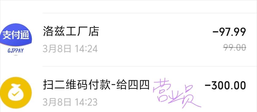 还有一个问题,我买了两件衣服,一件付公司支付通,一件付给个人微信,这又是什么操作