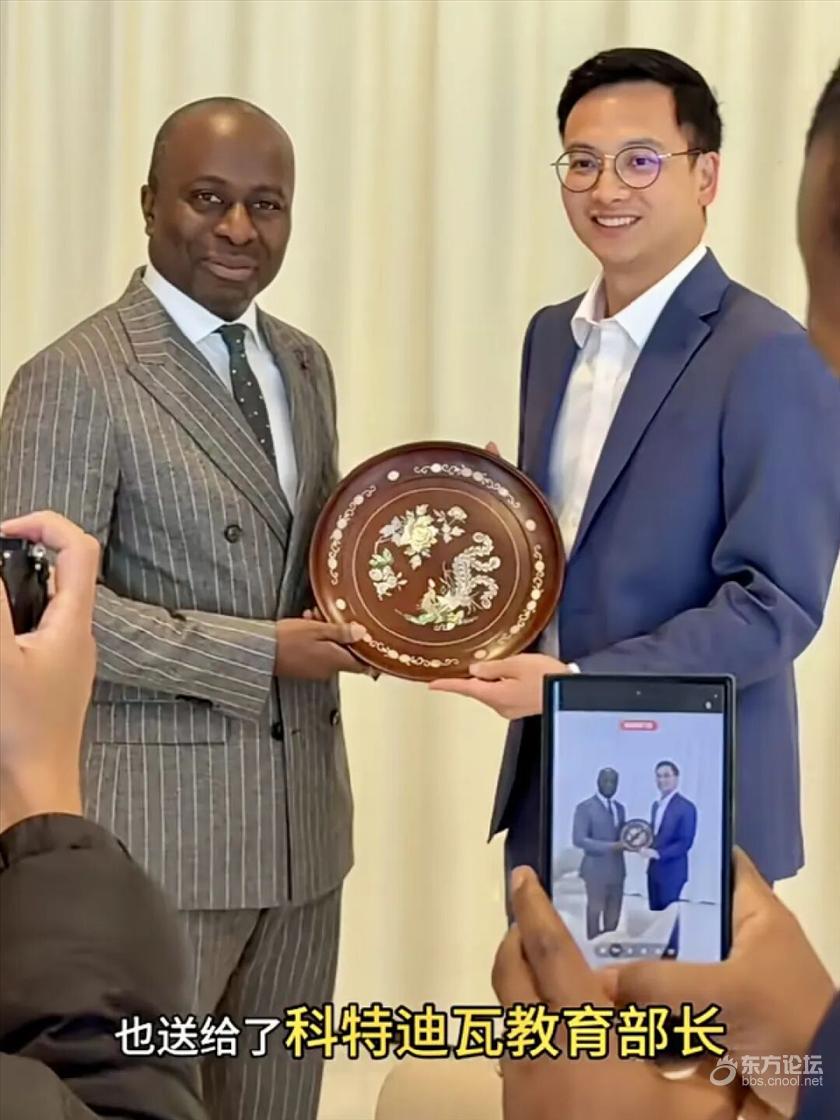 今天,一段“把宁波非遗带到联合国”视频刷屏宁波人的朋友圈。 视频中,编程猫CEO李天驰在联合国教科文组织的AI教育论坛上,完成了一次特别的“文化出海”,将一份来自宁波海曙的礼物——凤翔牡丹螺钿赏盘,分别赠予保加利亚前副总理玛丽亚女士与科特迪瓦教育部长穆洛先生。 ![]() 值得一提的是,这份礼物的选定,源于一次互动。此前,李天驰公开征集亮相联合国的礼物建议,有市民留言推荐:“送宁波海曙的非遗螺钿赏盘吧!宁波海曙千年罗城,一座兼具历史厚重和现代时尚的文化魅力之都。”网友的“高赞”推荐,让这件非遗登上世界舞台。