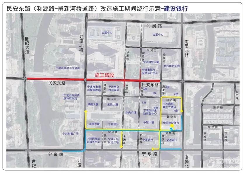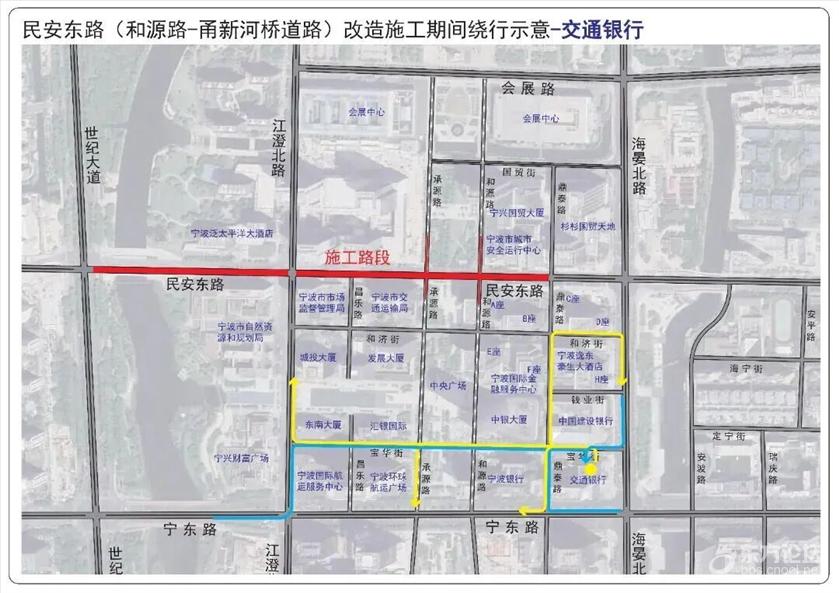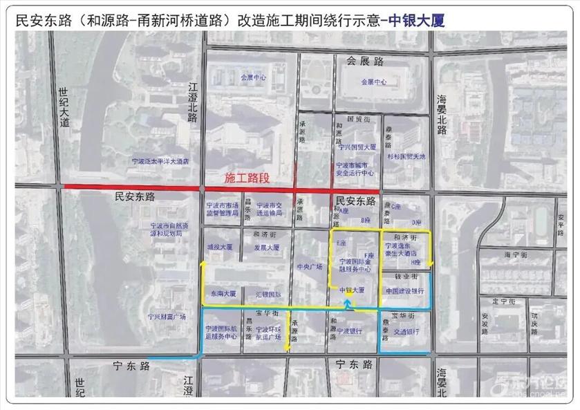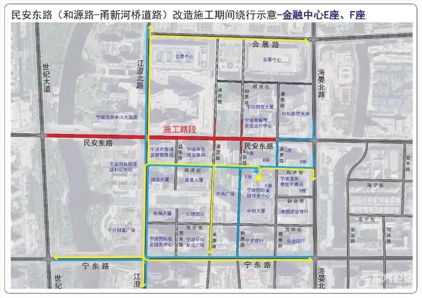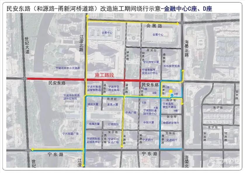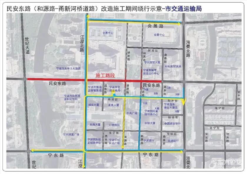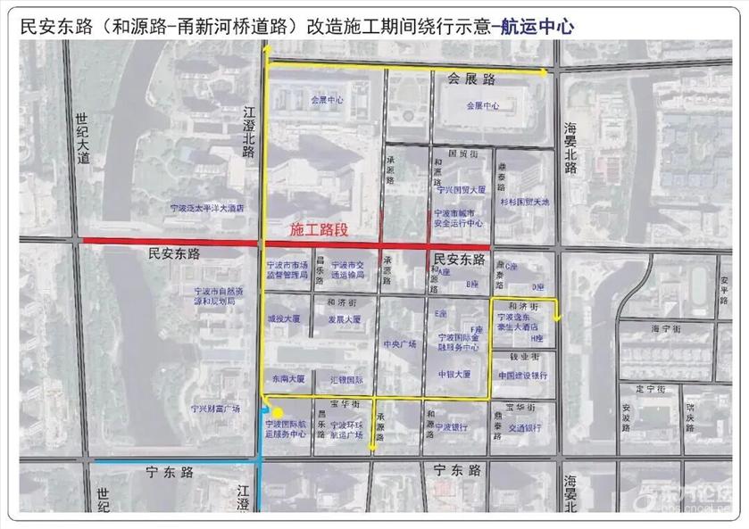 具体管制措施为: 一、全天禁止一切机动车在民安东路(世纪大道—鼎泰路)上通行。 二、施工期间和源路(国贸街—民安东路)允许机动车双向通行,施工结束后恢复机动车南往北单行路设置。 三、受交通管制影响车辆可通过宁东路或会展路绕行。具体请参考这些绕行示意图—— ![]() ![]() ![]() ![]() ![]() ![]() ![]() ![]() ![]() ![]() ![]() ![]() ![]() ![]() ![]() ![]() ![]() 此外,受民安东路(世纪大道—鼎泰路)道路施工影响,为保证公交线路正常运营,拟在交通管制期间对8路、17路、21路、168路、351路、356路、504路、517路、521路,定制1号、2号、3号、4号线实施临时改道运营。 具体如下: 1.公交庆丰桥站至公交光华路站的8路实行双向临时改道运营。 (1)改道走向:民安路世纪大道口后改走世纪大道、宁东路、江澄北路、江澄北路民安东路口后恢复原线运营。 (2)撤销民安东路走向。 (3)增设:江澄北路民安东路口站。 2.会展路盛梅北路口至锦江年华的17路、公交会展路站至汇港大厦的21路、东环南路地铁站至鄞州政务服务中心(明州医院北)的168路、公交招宝山站至公交福明站的351路、公交国际会展中心站至公交姚江站的517路实行双向临时改道运营。 (1)改道走向:民安东路海晏北路口后改走海晏北路、宁东路、世纪大道、世纪大道民安路口后恢复原线运营。 (2)撤销部分民安东路走向及会展中心南大门站。 (3)增设:国际金融中心、国际航运中心站。 3.会展路盛梅北路口至公交新典路站的356路实行双向临时改道运营。 (1)改道走向:江澄北路民安东路口后改走江澄北路、宁东路、世纪大道宁东路口后恢复原线运营。 (2)撤销部分民安东路、世纪大道走向及世纪大道民安路口站。 (3)增设:江澄北路民安东路口站。 4.公交清水桥站至海晏北路(宁波文化广场北)的504路实行双向临时改道运营。 (1)改道走向:民安路世纪大道口后改走世纪大道、宁东路、宁东路江澄北路口后恢复原线运营。 (2)撤销部分民安东路、江澄北路走向及江澄北路民安东路口站。 5.公交汉塘站至公交国际会展中心站的521路实行双向临时改道运营。 (1)改道走向:江澄北路民安东路后改走江澄北路、会展路、会展路海晏北路口后恢复原线运营。 (2)撤销民安东路、部分海晏北路走向及会展中心南大门、海晏北路民安东路口(民安东路地铁站)↓站。 (3)增设:会展中心西站。 6.三和嘉园至会展中心南大门的定制1号线临时调整为三和嘉园至江澄北路民安东路口运营。 (1)调整走向:开往江澄北路民安东路口方向,三和嘉园始发后按原线运营至江澄北路民安东路口站(路东);开往三和嘉园方向,由江澄北路民安东路口站(路西)始发后按原线运营。 (2)双向撤销部分民安东路走向及撤销会展中心南大门站(始发站)。 7.中央广场至公交紫郡站的定制2号线、中央广场至雍城世家小区东的定制3号线实行单向临时改道运营。 (1)改道走向:中央广场站始发改走和济街、和济街承源路口后按原线运营。 (2)中央广场下午始发站点临时调整至上午中央广场下车点位(和济街南侧)。 8.江南第一学堂至中央广场的定制4号线实行双向临时改道运营。 (1)改道走向:往中央广场方向:世纪大道民安东路口后改走世纪大道、宁东路、江澄北路、和济街、和济街昌乐路口后恢复原线运营;往江南第一学堂方向:中央广场始发后改走和济街、海晏北路、宁东路、世纪大道、世纪大道民安路口后恢复原线运营。 (2)撤销部分世纪大道↑、民安东路、昌乐路↓、江澄北路↑、和济街↑走向。 (3)中央广场下午始发站点调整至上午中央广场下车点位(和济街南侧)。 |