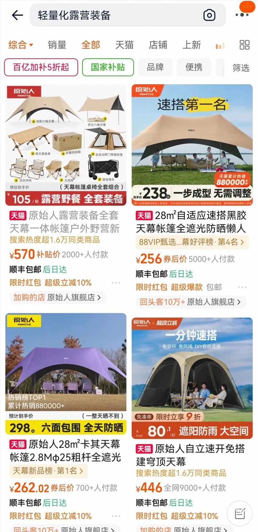 淘宝上,轻量化露营产品很热门 线上市场的热度同样印证着这一趋势。淘宝某户外用品店负责人在接受记者采访时表示,2025年其“轻量化露营”系列产品销量已占露营类总销量的近八成,轻量化速开帐篷、200克充气睡垫、便携口袋炉等单品成为店铺绝对爆款。2026年开春以来,店铺轻量化装备销量同比增长180%,多款轻量化帐篷、便携炊具频繁断货,足见年轻人对“轻便装备”的迫切需求。 露营装备租赁市场的爆发,更是加速了“搬家式露营”的退场。据宁波本地多家露营租赁商家及平台不完全统计,2026年一季度租赁订单量同比大幅增长,单人/双人基础套餐日租价格多在80-150元区间。“租比买更划算、更省心”成为不少年轻消费者的共识。“我们的用户以上班族为主,周末不想花时间准备和收纳,到营地直接用、玩完就走,才是真正的放松。”多位租赁商家在受访时表示。 人群画像的变化,同样印证着露营的全民化转型。据行业观察与市场走访显示,宁波露营人群中年轻群体占比接近七成,90后、00后成为主力军,女性参与者占比同样居高不下。 消费频次显著提升,从过去的年度体验转为每月1—2次的常态化休闲,短途微度假流行,单日露营成为主流选择,露营逐步融入日常生活。