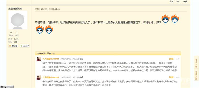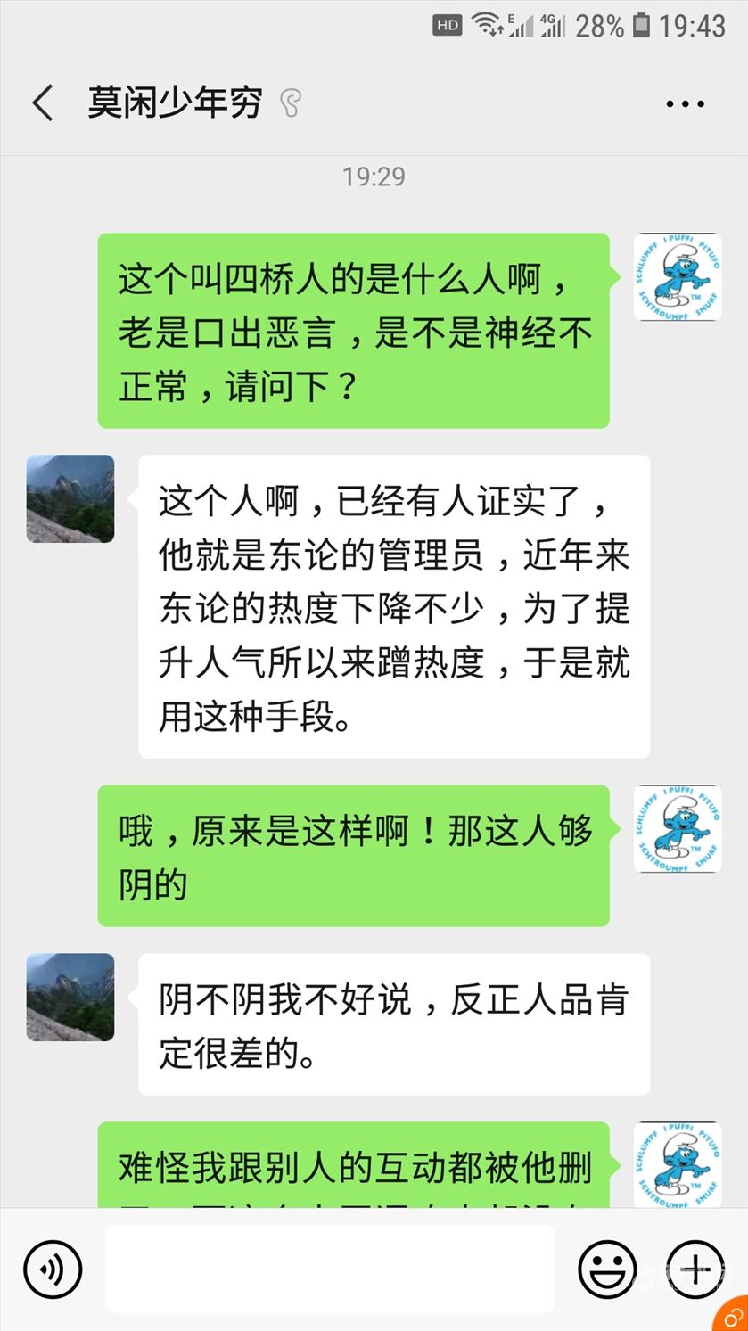 找朋友版块的版主“善良的坏蛋”,这货品行相当的卑劣,如此卑劣之人也配当版主?下面只是部分截图,在三年时间里(其实不止三年)不断的变换帐号,最出名的是那个带着“笑傲江湖”字眼的帐号,天天在这个版块弄别人,被多少人骂过了,连它爸妈都被人骂进,它说“尽管骂尽管骂,反正我又不来征婚,就为了玩你们。”大家都已经这把年纪了也够难的了,它还要弄别人,破坏别人征婚。竟然坏到这种地步。我当时还不断的跟版主反映这个情况,但不断的被删,当时在想这个版主到底是何居心,一味的袒护这个笑傲江湖,后来才知道这人竟是版主它自己(只是猜测)。之所以现在它没在这里弄别人了,是因为知道事情闹大了,不敢冒头了。希望这事能立案,查查“饿的对话,”饿的吃鸡“,”非得让我吃鸡“,”笑傲江湖”,”我不是笑傲江湖“,我是笑傲江湖“等等等等还有好多,是不是”善良的坏蛋“本人。早日能处理这人。