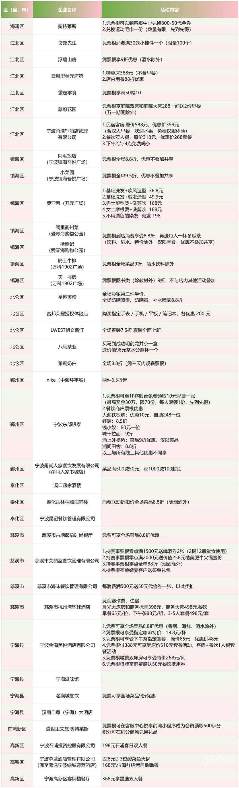 部分票根优惠活动参与商户(精选)
