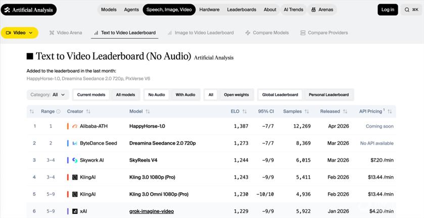 阿里“认领”HappyHorse。 4月10日,阿里ATH方面向澎湃新闻记者表示:“HappyHorse是阿里ATH旗下创新事业部研发的模型,目前正处于内测中,也会于近期开放API。ATH创新事业部已启动一个AI时代的全新交互方式探索计划,HappyHorse是这个探索方向的一部分,更多的产品我们会陆续推出。” 据澎湃新闻记者了解,HappyHorse开放API访问功能的时间为4月30日。 ![]() 近日,在第三方AI模型测评平台Artificial Analysis公布的文生视频模型榜单Video Arena上,一个由匿名团队提交、名为HappyHorse-1.0的模型“空降”榜单榜首,超越了字节跳动旗下Seedance 2.0以及快手旗下可灵3.0等知名产品。 ![]() 榜单显示,HappyHorse-1.0模型在不包含音频维度的情况下,Elo得分达到1379分,这一得分较今年2月底爆火的Seedance 2.0模型高出106分,也高于昆仑万维旗下SkyReels V4以及可灵AI 3.0等时下热门视频生成模型。而在图像生视频(不包含音频维度)赛道,HappyHorse-1.0模型跑出了1411的高分,超越了Seedance 2.0模型的1356分和xAI旗下grok-imagine-video的1331分。 公开资料显示,Artificial Analysis的榜单采用盲测机制,让用户在不知模型来源的情况下对生成视频进行对比选择,并通过类似国际象棋的Elo评分系统汇总结果,形成基于真实用户偏好的排名体系。相较于传统由厂商自报成绩的评测方式,该机制被认为提供了更客观的模型质量信号。不过,值得注意的是,由于样本数量不同,新模型的Elo分数波动性会比老模型更大。此外,由于Elo属于相对评分,小幅分差通常不具统计意义,60分左右的差距才被认为代表稳定的胜率优势。 据悉,阿里ATH事业群全称是Alibaba Token Hub事业群。3月16日,澎湃新闻记者获悉,阿里巴巴CEO吴泳铭发内部公告,阿里正式成立ATH事业群,建立以“创造Token、输送Token、应用Token”为核心目标的新组织,由吴泳铭直接负责。这是阿里巴巴面向AI Agent时代一次重要组织调整,以Token Hub为核心主线,强化AI业务战略协同,全面推进阿里AI战略落地。 4月8日,吴泳铭再次发布内部信,阿里巴巴在集团层面设立技术委员会,由吴泳铭担任组长,成员包括周靖人、吴泽明、李飞飞。其中,周靖人担任技术委员会首席AI架构师,李飞飞负责阿里云技术以及AI云基础设施建设,吴泽明负责集团业务技术平台以及AI推理平台建设。围绕加速AI建设的整体目标,阿里还将通义实验室升级为通义大模型事业部,由周靖人负责。 阿里方面表示,2026年是阿里AI加速发展的关键一年。从成立ATH事业群,到最新模型Qwen 3.6 Plus问鼎OpenRouter全球大模型周调用量冠军,近期阿里在AI领域的新动作不断。本次调整意味着聚合优势力量和资源,投入最关键战场,表明阿里已进入AI全面加速期。 据大智慧VIP,截至港股午盘休市,阿里涨2.85%,报126.4港元/股。 |