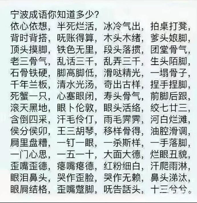 网上看到的,这些阿拉宁波人的成语,你都会说伐?