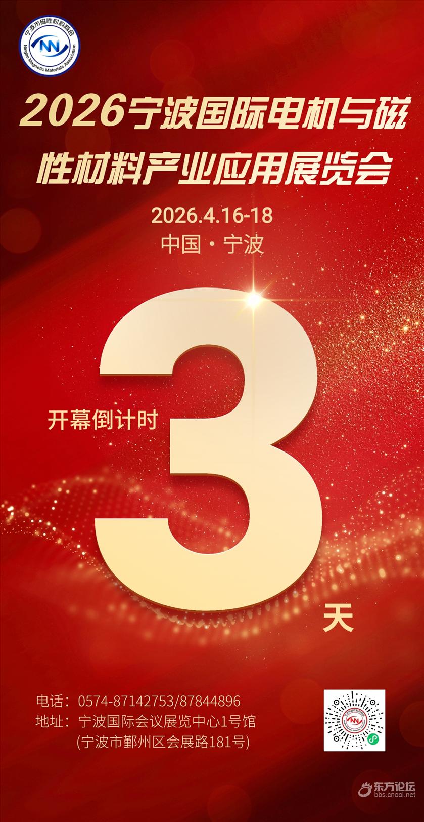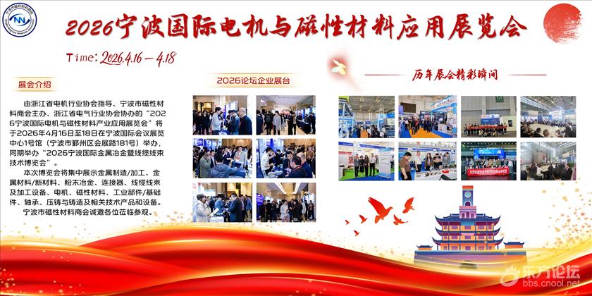 由浙江省电机行业协会指导、浙江省电气行业协会、宁波市磁性材料商会联合主办的“2026宁波国际电机与磁性材料产业应用展览会”将于2026年4月16日至18日在宁波国际会议展览中心1号馆举办,同期举办“2026宁波国际金属冶金暨线缆线束技术博览会”。本次博览会将集中展示金属制造/加工、金属材料/新材料、粉末冶金、连接器、线缆线束及加工设备、电机、磁性材料、工业部件/基础件、轴承、压铸与铸造及相关技术产品和设备,本次博览会共启用1、2、3、4、5、6号馆,其中1号馆为电机与磁性材料应用产业专馆,展览总面积超30000㎡。宁波市磁性材料商会诚邀各位莅临参观。