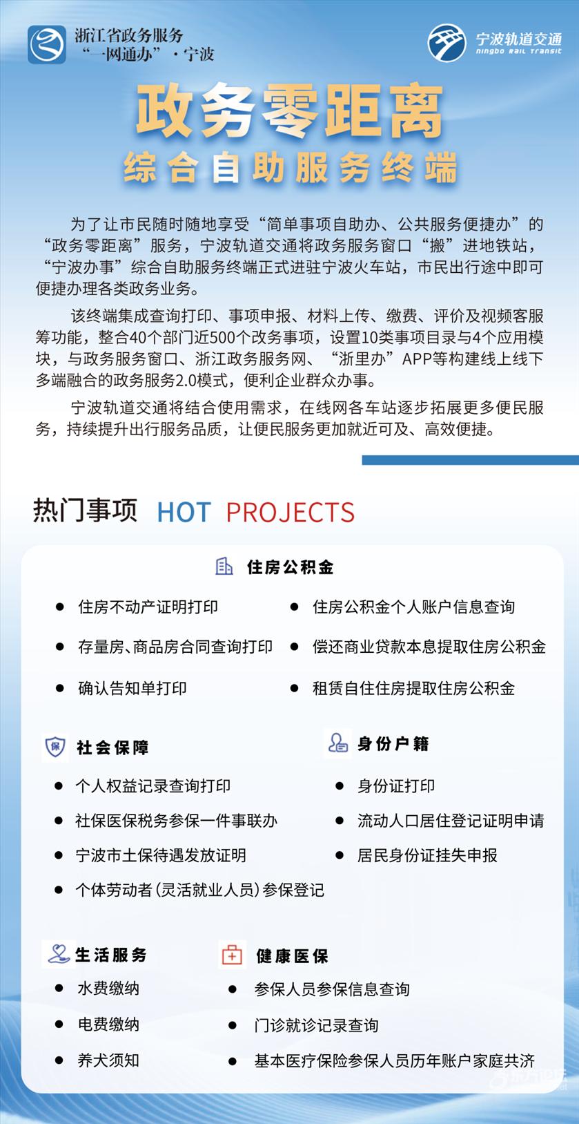 上新的“宁波办事”综合自助服务终端设在宁波地铁2号线宁波火车站站台层畅行岛附近。