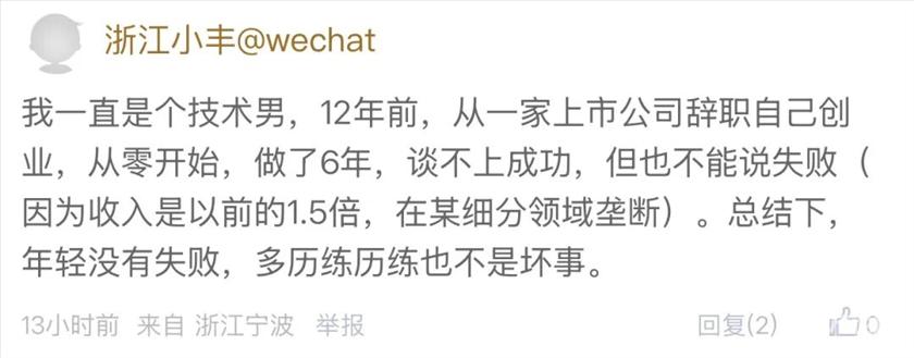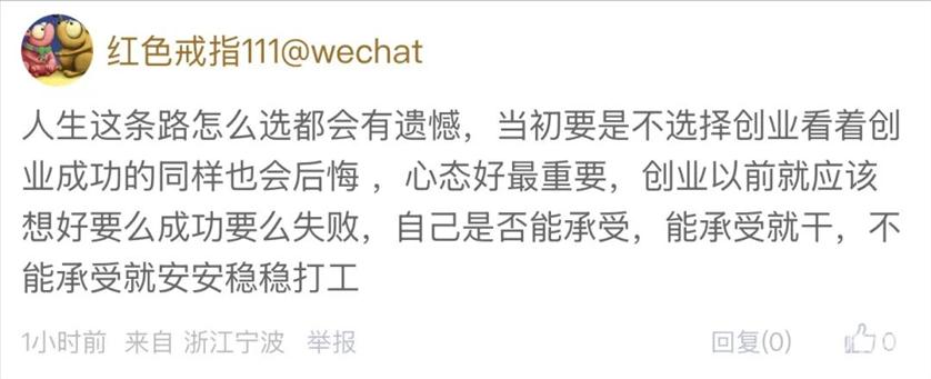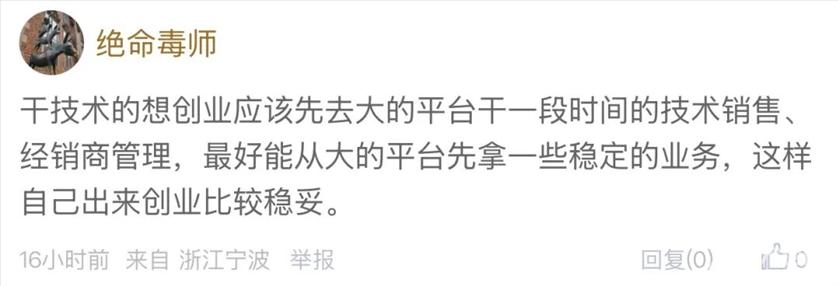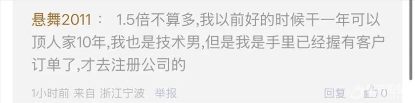 大家觉得,2万元的月薪在宁波是什么样的水平?如果你拿着这份月薪,会选择辞职去创业吗? 最近,东论网友@1367微微一笑就发帖讨论了这件事,他以朋友的亲身经历,给创业这条路“浇了一盆冷水”: ![]() 2万月薪,在宁波已经算得上是很不错的收入了。但就是在这样的前提下,这位朋友选择了辞职创业,最后忙得灰头土脸,还没赚到什么钱。 任谁看,这似乎都不是个划算的抉择。 ![]() 图片由微信AI生成 对于这种情况,有网友一针见血地指出,这位创业者应该是低估了平台的力量。 ![]() 这句话确实有一定的道理。 宁波有很多这样的制造业、外贸业、科技型企业,培养了无数优秀的技术人才和业务骨干,都拿到了不错的薪水。 但能有所成绩,除了自身的能力出众外,公司团队的能力同样不可忽略。品牌影响力、销售团队、后勤团队……哪一环都是缺一不可的。 这也就导致技术型人才单独出来创业后,会屡遇瓶颈。毕竟一家公司想赚钱,看的是综合能力。 ![]() 而且除了配置问题外,我们不得不承认,对于现在的创业者来说,大环境确实变得困难了。毕竟街边的店铺来来往往都成了常态,更别说难度更大的公司了。 那么,这位网友开公司的选择就是绝对错误的吗?其实也不然。 打工和创业,从根本上来说是两种人生,一种是安稳,另一种是风险博弈。 有的朋友偏好安稳,就选择在公司工作。 ![]() ![]() 有的朋友做好了准备,出去闯一闯,最后也取得了成功: ![]() ![]() 如果回溯老一辈的故事,创业并非全是坏事,大家都熟悉的"宁波帮"也在历史上留下了浓墨重彩的一笔。 再者,也有朋友提出,与其空有想法,一味踌躇,最后后悔,不如在准备齐全的情况下去试一试,也许熬过最开始的阶段到后面就好了。 ![]() ![]() ![]() 当然,对于想要创业的朋友们来说,还是要牢记以下几点,永远不要裸辞创业,先兼职试水, 不要all in全部积蓄,给自己留条后路,认清自己的能力边界,学会借力。 如果是你,你会选择去创业吗? 欢迎留言讨论 |