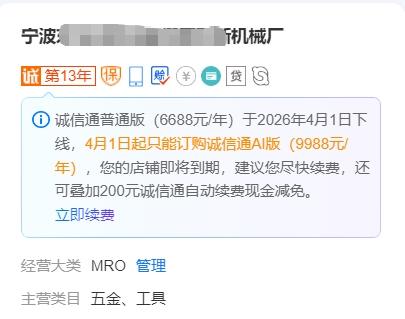 阿里巴巴诚信通开通已经有13年了,年费从第一年2600元,以后年年涨,今年一次性涨价3300元,自从疫情以后国内工厂的日子没好过,现在工厂能有以前一半的产值已经不错了,特别是一些100人以下,几十人的厂基本都是亏损,公务员的工作也降了,房价,物价都降了。店大欺客的阿里巴巴什么都不做,年费反而涨价30%,难道不为现实中苦苦挣扎的工厂考虑一下吗?
