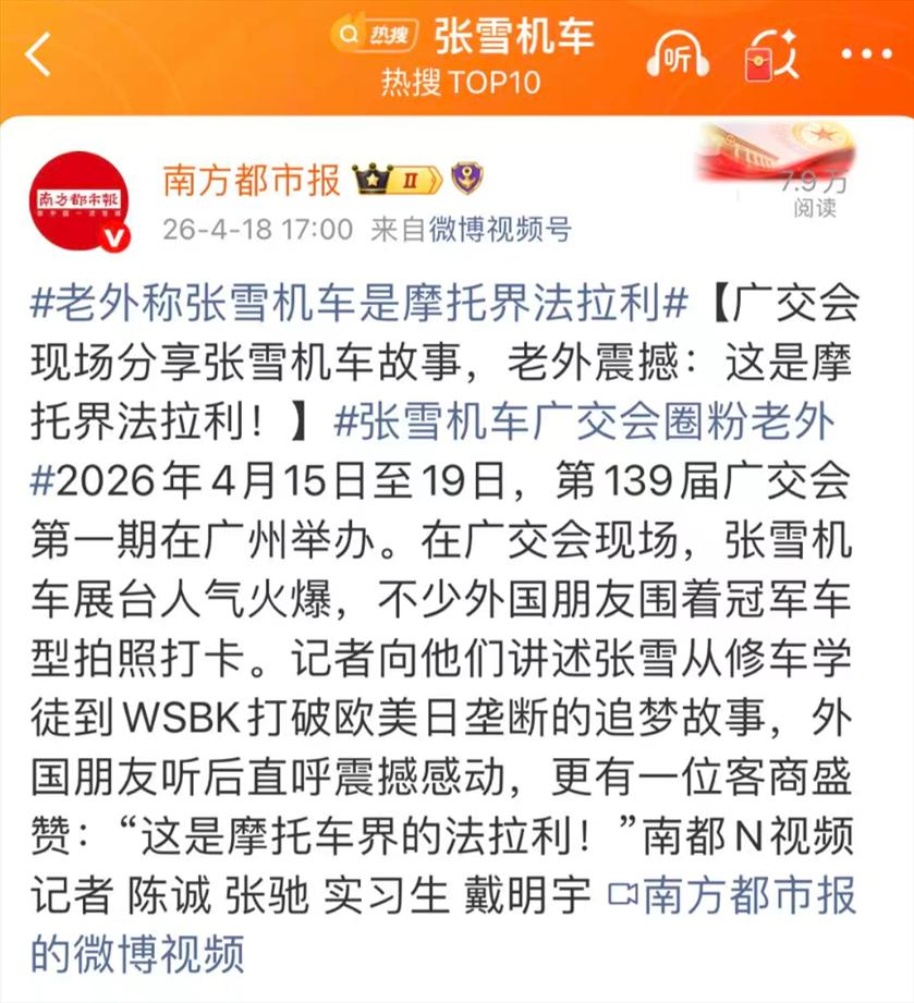据“广交会微新闻”微信公众号消息,张雪机车外贸部部长黄秦17日在广交会上透露,截至目前,张雪机车已收到1000余台订单,首批销往欧洲的产品预计在6月左右发运。“两个月后,就能在欧洲市场看到我们的产品了。” ![]() 4月17日,客商在广交会张雪机车的展位上参观。新华社发 一个月前,法国车手驾驶张雪机车在WSBK葡萄牙站连续两回合夺冠。张雪机车一举打破杜卡迪、雅马哈等国际品牌的长期垄断,品牌认知度迅速被推至高点。 据报道,首次参加广交会的张雪机车携冠军同款820RR惊艳亮相,展位一早便挤满了慕名而来的海外采购商与国内同行。 ![]() 据央视财经,张雪机车外贸部部长黄秦表示:“这两天现场非常火爆,超过5000名客商直接冲着我们品牌来的,来了之后都要求成为当地的代理,要求直接下订单,我们收到了上千台的订单。” ![]() 展会现场。图源:重庆发布 4月16日,张雪晒员工广交会采访视频,视频中的员工称已经有不少订单来自西班牙等欧洲国家,“为我们老板感到高兴”。 张雪则留言表示:我能感觉到同事很骄傲,但是我们是一伙的,一荣俱荣,而且赚钱大家分,还笑称为老板感到高兴好假噢。 ![]() |