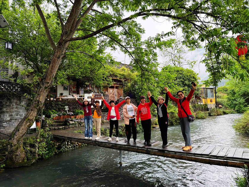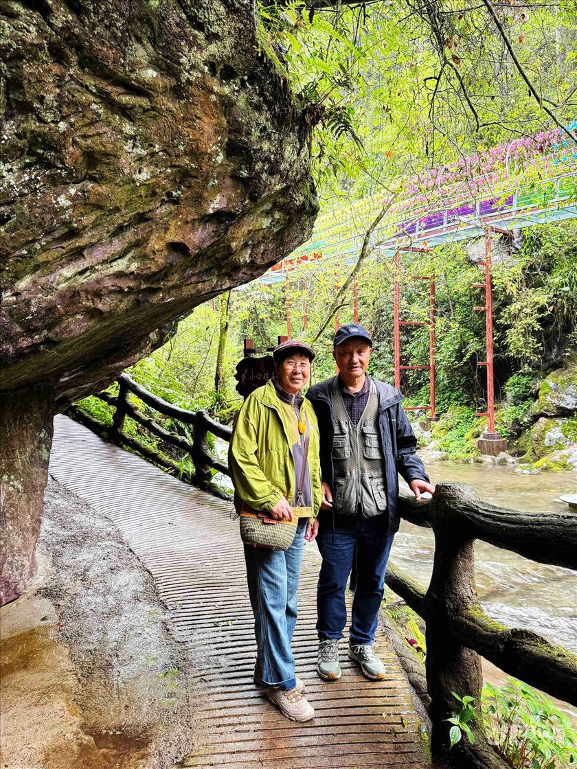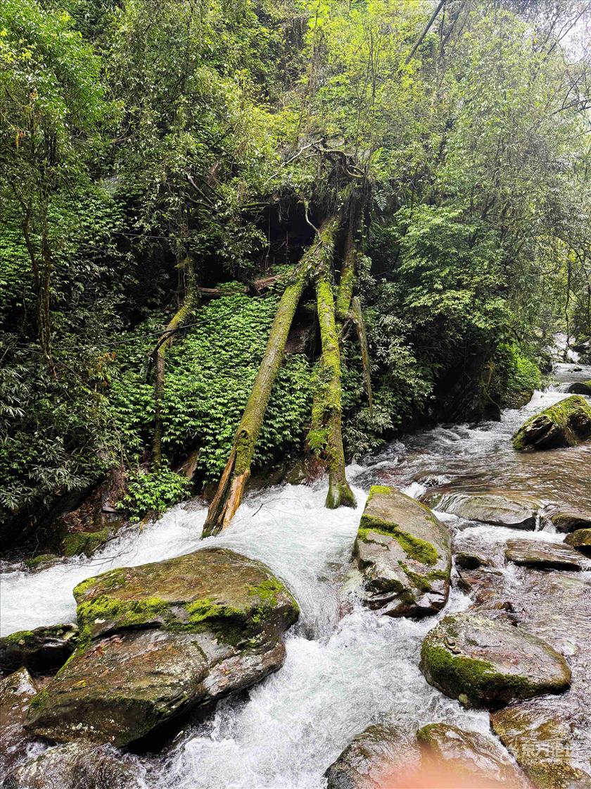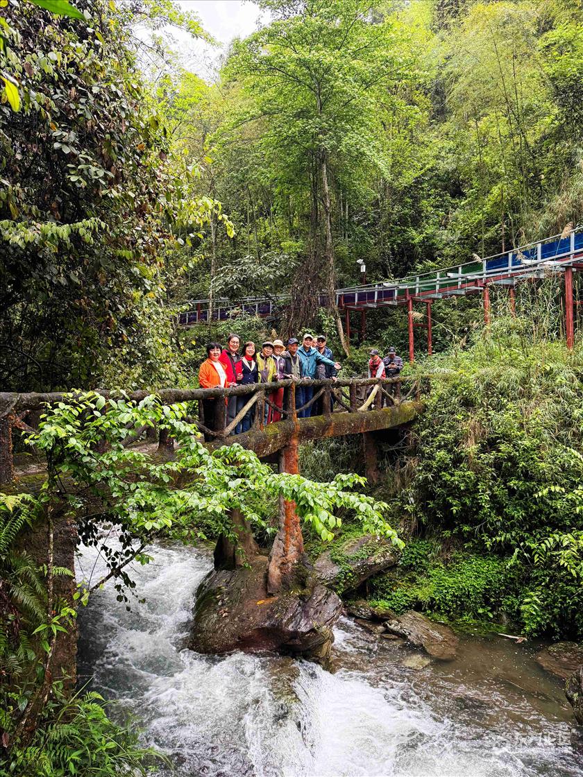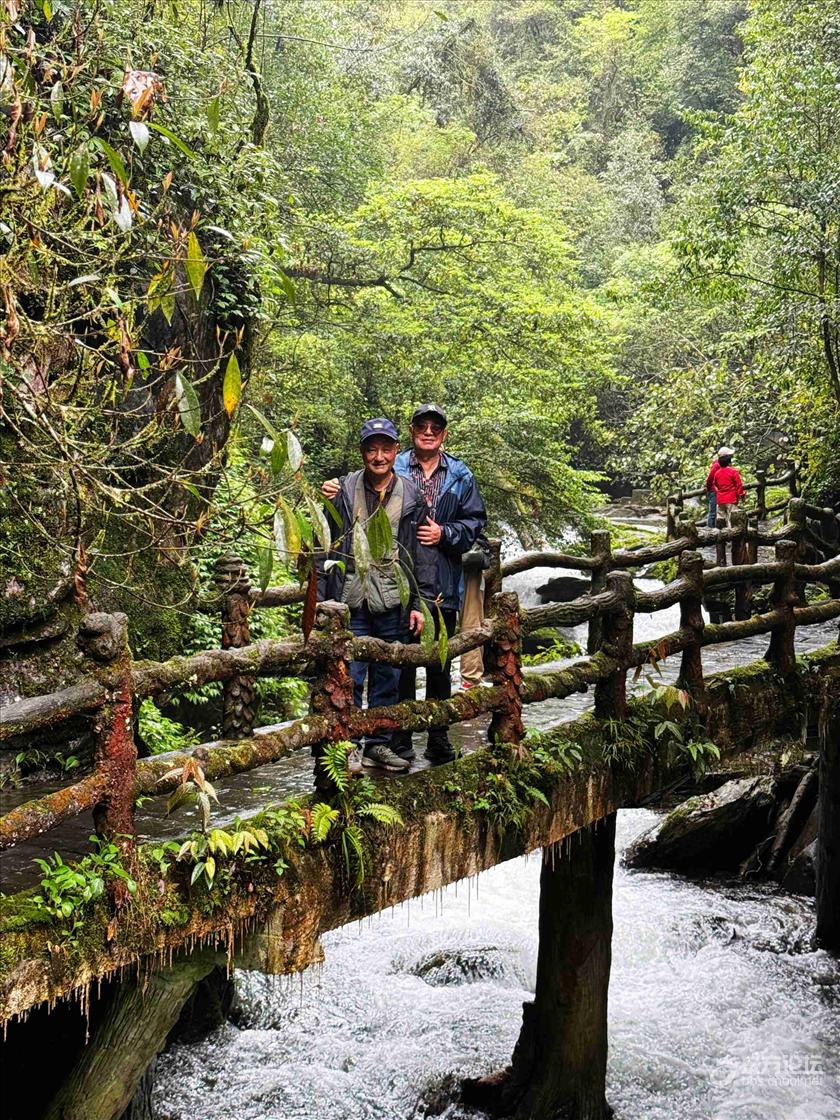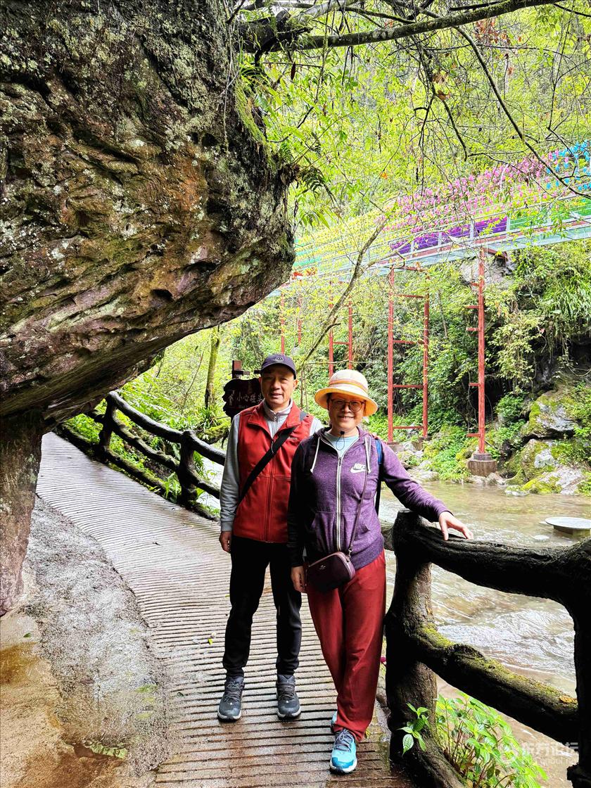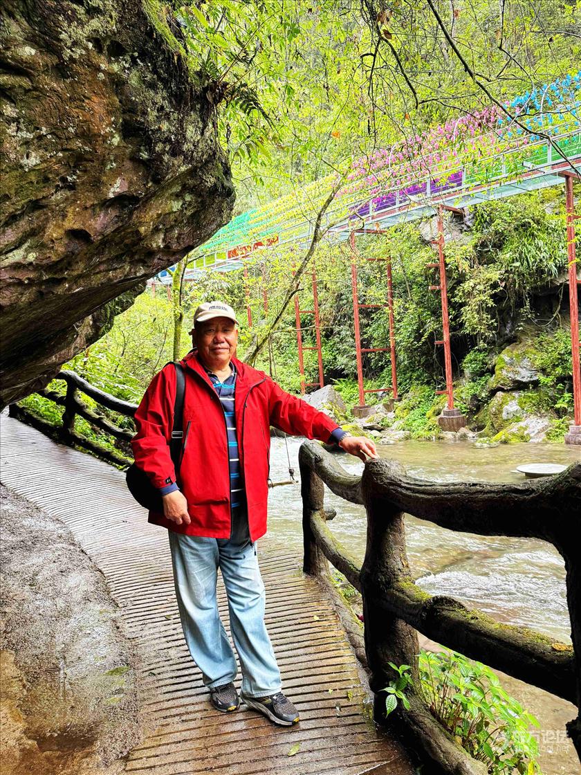 2026年4月15日,爬过梵净山后,大家带着轻松的心情,一起来到云舍村,后游亚木沟,原生态的美景更让我们感到非常的惬意。走进春日的云舍村,这座被誉为“中国土家第一村”的传统村落,山谷间万物舒展,村寨宛如一处隐于山水之间的桃源。青瓦木楼顺山而立,吊脚楼层层错落,木质结构在阳光下泛着温润光泽。村寨中央的神龙潭清澈见底,泉水自地下涌出,四季恒温,沿着溪流缓缓穿村而过。水中倒映着树影与游鱼,与水草交织成景,一幅“小桥流水人家”的山地水乡画卷徐徐展开。小桥跨水而立,清流绕村而行,人与自然在空间中彼此嵌合,真的是人在村中行,水在脚下流。接下来,我们去了亚木沟景区。它位于贵州省铜仁市江口县的国家AAAA 级旅游景区,毗邻梵净山,被誉为"贵州第一沟",以原始峡谷生态、高负氧离子空气及土家民俗文化为核心特色 。走在溪边,随着水流轻轻淌过形态各异、色彩斑斓的石头,仿佛一缕缕生命之魂被注入其中。水是这里无处不在的灵魂所在,流动的水和多彩的石头相互辉映,使得亚木沟熠熠生辉。漫步在亚木沟的幽深之处,山水美景和静谧氛围让人心旷神怡,一边欣赏着苍松翠竹的挺拔与葱郁,聆听着泉水叮咚的悦耳之声,一边探寻着山林间沉淀的历史痕迹。这里是探索与放松的绝佳去处。来到亚木沟,就像是一头扎进了绿色的童话世界,高达百分之九十七的森林覆盖率,让这里成为了名副其实的“绿色王国”。