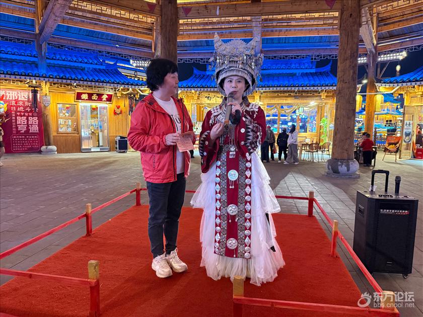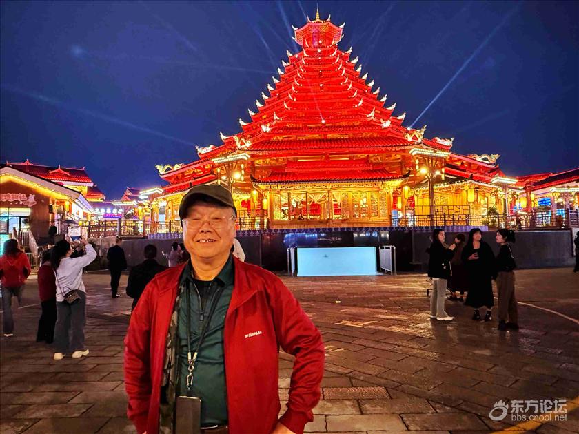 2026年4月15日下午,全部行程已经结束,本该到火车站等候,旅行社考虑到晚上11点多的火车,又安排了我们去怀化刚兴建的景区榆树湾景区。据资料介绍,榆树湾曾是一片废弃的老厂区。现在已经是集民族文化展示、餐饮美食、文创零售、沉浸式场景演艺于一体的景区,全面呈现怀化厚重的历史文化和鲜活的市井烟火,随处可见侗、苗、瑶、土家等少数民族元素。每一处飞檐、每一扇雕花窗,都融入了侗族鼓楼、苗族吊脚楼的营造技艺。夜幕低垂,华灯初上。榆树湾的夜景,没有都市的喧嚣与浮躁,只有生活的烟火气和自然的宁静。在这里,时间仿佛放慢了脚步,让人有机会细细品味生活的美好与细腻。这样的夜景,这样的体验,定会成为我们记忆中最宝贵的财富。在“大家唱“中,我们三位群友走上前去互动,一时间掌声响起,其乐融融。欣赏好夜景,我们来到火车站,乘上卧铺车,第二天(16号)到达宁波,本次旅程圆满结束。