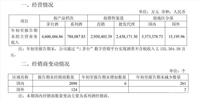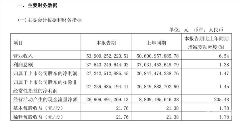 A股“股王”贵州茅台一季报正式出炉,营业总收入和净利润均正增长。 4月24日,贵州茅台酒股份有限公司(贵州茅台,600519.SH)发布2026年第一季度报告,报告期内,公司实现营业总收入547.03亿元,同比增长6.34%;营业收入539.09亿元,同比增长6.54%;归母净利润272.43亿元,同比增长1.47%;基本每股收益21.76元/股,同比增长1.78%。 ![]() 据Wind数据,贵州茅台一季度营业总收入和归母净利润均创下同期历史新高,但增速近几年放缓。此前,公司一季度营业总收入已连续11年保持两位数增长,净利润已连续4年保持两位数增长。 ![]() 贵州茅台近年来一季度业绩表现,来自Wind数据 倘若按照272.43亿元的净利润计算,贵州茅台一季度(90天)日均赚约3.027亿元,上年同期日赚约2.983亿元。 具体来看,按产品划分,一季度,茅台酒实现营收460.05亿元,同比增长5.62%;系列酒营收78.81亿元,同比增长12.23%。按地区来分,国内实现营收537.34亿元,同比增长8.64%;国外营收1.52亿元,同比下降86.42%。 ![]() 按销售模式来分,报告期内,直销模式实现营收295.04亿元,同比增长27.06%;批发代理模式营收243.82亿元,同比下降10.88%。据记者计算,直销模式收入在总营收中占比达53.93%,相较于去年一季度直销45.13%的占比进一步提升。 i茅台渠道的销量及收入,也是现阶段外界关注的焦点。此前,i茅台透露,“今年一季度,我们迎来了近1400万新朋友,超过398万用户买到了心仪的产品。” 根据财报显示,年初至报告期末,公司通过“i茅台”数字营销平台实现酒类不含税收入215.53亿元,相比上年同期的58.7亿元增长267.17%。 此外,从经销商变动来看,报告期末,国内经销商2098个,期内增加6个,减少261个,本期国内经销商数量变动主要为系列酒经销商;国外经销商124个,期内增加0个,减少2个。 财报还显示,一季度,贵州茅台经营活动产生的现金流量净额达269.10亿元,同比增长205.48%,主要系公司控股子公司贵州茅台集团财务有限公司不可随时支取的同业存款净增加额减少所致。 需要指出的是,伴随着贵州茅台市场化转型系列举措的落地,对于一季报,此前不少机构的预测都较为乐观,且机构普遍看好贵州茅台一季度有望重回升势。股价方面,4月24日,贵州茅台收涨2.78%,盘中最高报1458.88元/股。 对于贵州茅台一季度“成绩单”,中国酒业独立评论人肖竹青对澎湃新闻记者表示,2026年以来,茅台持续围绕产品体系、价格体系、运营体系、渠道体系,稳步推动营销市场化转型,首次以市场需求为锚点,确立了“随行就市、相对平稳”的自营零售价格体系,全面拓宽C端触达面,推动实现供需适配,让产品直达消费端,推动i茅台营收实现大幅增长,一季度i茅台新增用户近1400万,成功购酒用户累计近400万,实现销售收入215.53亿元,同比增长267.16%,用户活跃度持续处于高位。由此可见,市场化改革初显成效,后续随着系列改革措施纵深推进,红利还将持续释放,也将对行业发展产生积极影响。 相较于一季度总营收和净利润的双增长,贵州茅台日前公布的年报显示,去年总营收和净利润罕见双双下滑,这是该公司上市以来首次出现年度业绩下滑。在年报披露次日,贵州茅台盘中一度跌破1400元大关,最终收跌3.80%,报1407.24元/股。 具体来看,2025年,贵州茅台实现营业总收入1720.54亿元,同比下降1.20%;营业收入1688.38亿元,同比下降1.21%;归母净利润823.20亿元,同比下降4.53%;基本每股收益65.66元/股。公司拟向全体股东每股派发现金红利27.993元(含税),合计拟派发现金红利350.33亿元(含税)。对于营收下滑,贵州茅台在财报中解释称主要受酱香系列酒产品结构调整影响。 就行业整体而言,当前,白酒行业整体承压,存量竞争加剧。国家统计局数据显示,2025年全国规模以上企业白酒累计产量354.9万千升,同比下降12.1%。 对于行业形势,贵州茅台在2025年年报中指出,一方面,白酒具有长期生命力,消费潜能依然有挖掘空间。作为历史经典产业,酒文化贯穿了人们高兴、欢庆、休闲、纪念等各个重要时刻,我国也成了世界上最大的白酒消费国,市场还大有潜力可挖。另一方面,行业马太效应愈发凸显,进入行业调整期,行业会通过“优胜劣汰”的自然法则进行系统性自我调节,资源将进一步向优势企业、优势品牌、优势产品集中。 华泰证券最新研报认为,白酒行业当前正处于深度调整与去库周期的尾声。中长期看,行业未来增长逻辑将由过去的“量价扩张”转向“量稳,价升,头部集中”,具备强品牌力与渠道力的龙头酒企有望率先复苏,穿越周期。 据大智慧VIP,截至4月24日收盘,贵州茅台报1458.49元/股,涨2.78%,总市值1.83万亿元;今年以来累计涨5.90%。 |
